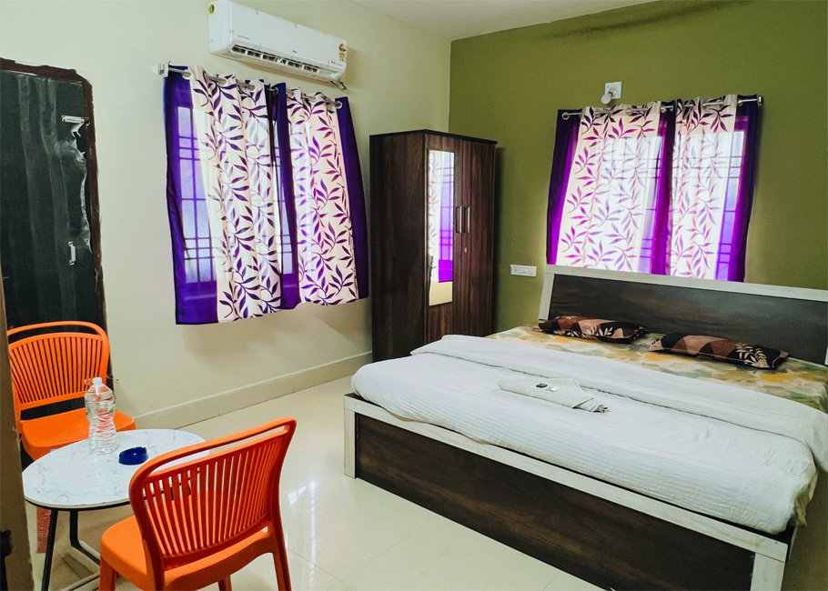 We offer safe, spacious parking for cars and two-wheelers inside the premises, ensuring a hassle-free and secure stay.